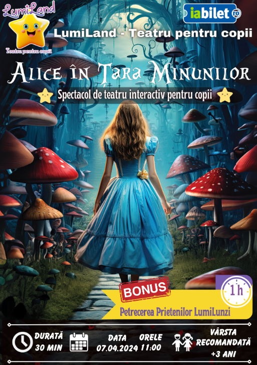 Salut, prieteni curioși! Vă pregătiți pentru o aventură magică? Ascultați cu atenție, pentru că vă voi povesti despre un spectacol interactiv minunat numit "Alice în Țara Minunilor"!
