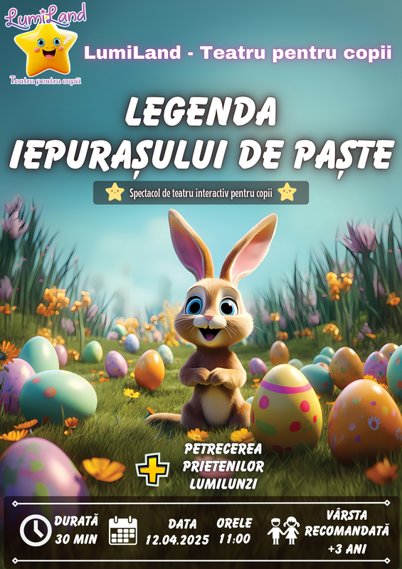 Descoperă magia sărbătorilor la spectacolul interactiv "Legenda Iepurașului de Paște" la LumiLand - Teatru pentru copii!