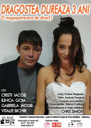 Spectacolul "Dragostea durează trei ani" de Frederic Beigbeder.