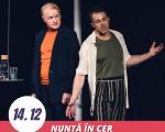 O călătorie în mitul eternului feminin, o poveste despre pierderea și (re)găsirea sufletului-pereche, spectacolul NUNTĂ ÎN CER aduce în atenția publicului, cu sensibilitate și emoție, firul invizibil ce leagă pe viață oamenii: dragostea.