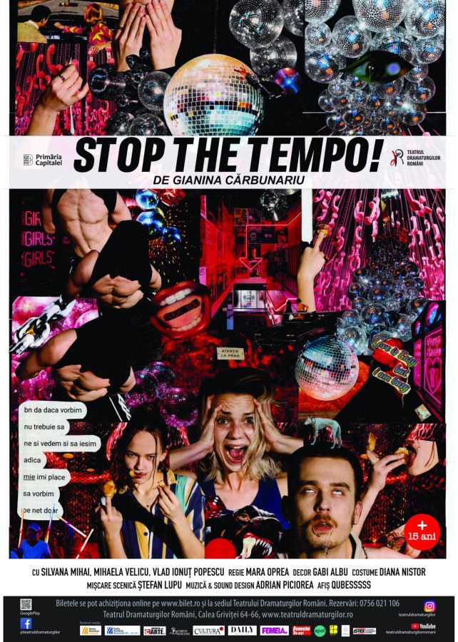 Un spectacol menit să ne ardă siguranțele, căci în beznă vedem cel mai bine cât de mult suntem în control, STOP THE TEMPO! spune povestea unor tineri aflați în goana nebună de a se simți vii, de a acționa tabloul de comandă al propriei existențe.