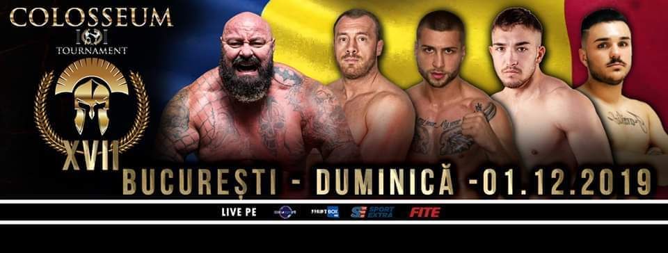 Colosseum Tournament XVII anuntă cel mai mare eveniment de Kickboxing ediția a-17-a la București pe data de 1 decembrie ce se va desfășura la sala Polivalentă având ca invitați de excepție, Paula Seling, Naționala Artiștilor, Puya, MC So, K1 etc..... cu transmisie în 45 țări, difuzare pe FightBox iar pe plan național se va difuza pe Digisport. Avem deosebita plăcere să va invitam sa luati parte la cel mai mare eveniment al anului de kickboxing. Vor lupta în ring sportivi consacrați pregătiți pentru Gala Colosseum Tournament XVII. Sandu Lungu Oficial Marian Dinu Cosmin Ionescu Andrei Ostrovanu Alex Voicu Silviu Ionescu Dragos Imbrea Costin Dinu Alin Cimpan Burtea Mihăiță-Robert Iote Tiberiu Constantin Daniel Scripcaru