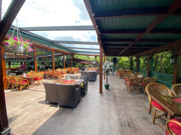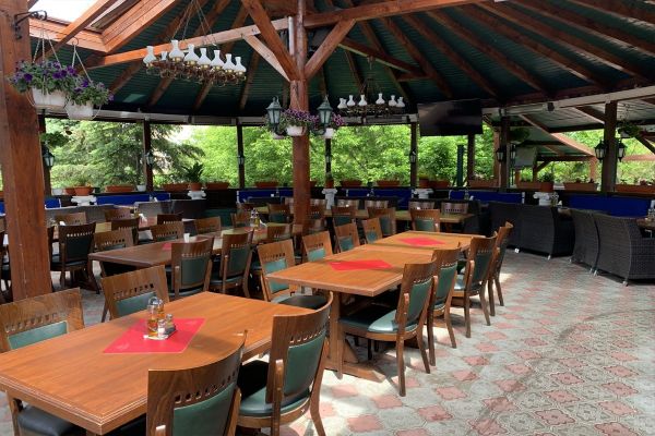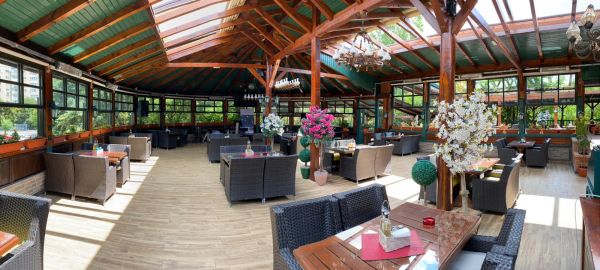 Restaurantul dispune de o terasa, cu o capacitate de 250 de persoane, si cu un spatiu interior de 300 de persoane.