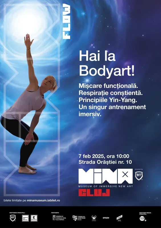 Pe 28 martie, de la ora 09:30, te invităm la o nouă clasă de Bodyart în spațiul imersiv MINA Cluj. O experiență care îmbină mișcarea funcțională, respirația conștientă și echilibrul interior într-un cadru vizual spectaculos.
