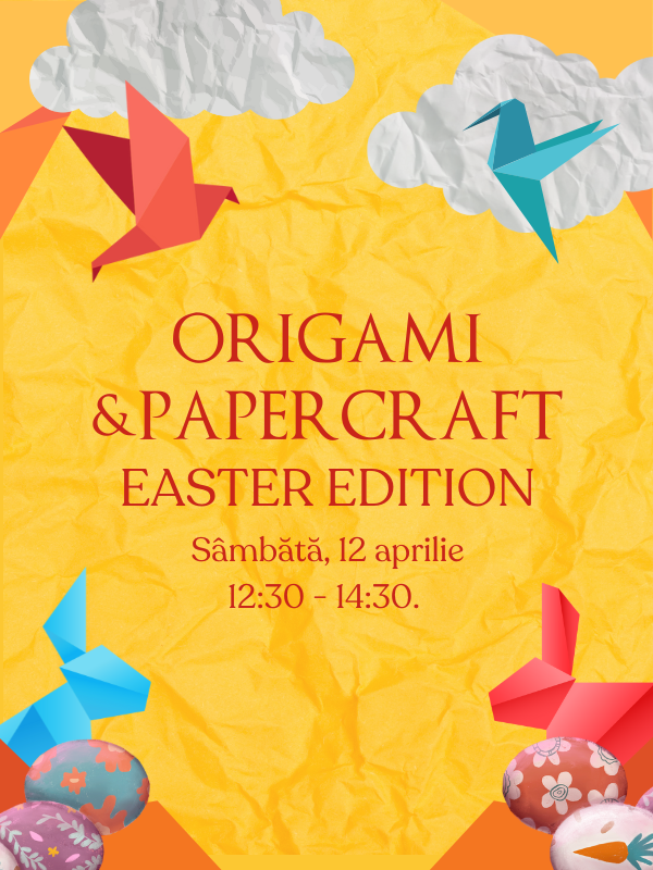 Vă invităm să sărbătorim împreună frumusețea primăverii și magia Paștelui la o ediție specială a atelierului de origami & papercraft.
