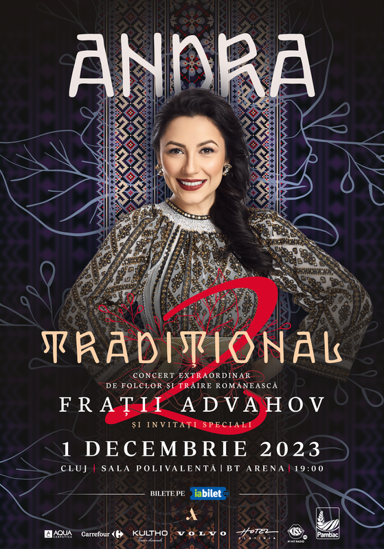 Tradițional 2, cel mai așteptat spectacol românesc, pe 1 decembrie, la BT Arena. Andra revine cu superproducția artistică bazată pe muzică tradițională românească, după succesul fulminant al „Tradițional”, tot cu susținerea orchestrei Frațiilor Advahov. Aproape 100.000 de spectatori au văzut una dintre cele 15 reprezentații live, toate sold-out, susținute atât în România, cât și în Italia și în Marea Britanie. În 2023, publicul se va putea bucura de o nouă versiune a conceptului, cu piese noi și invitați speciali care vor oferi o experiență completă.