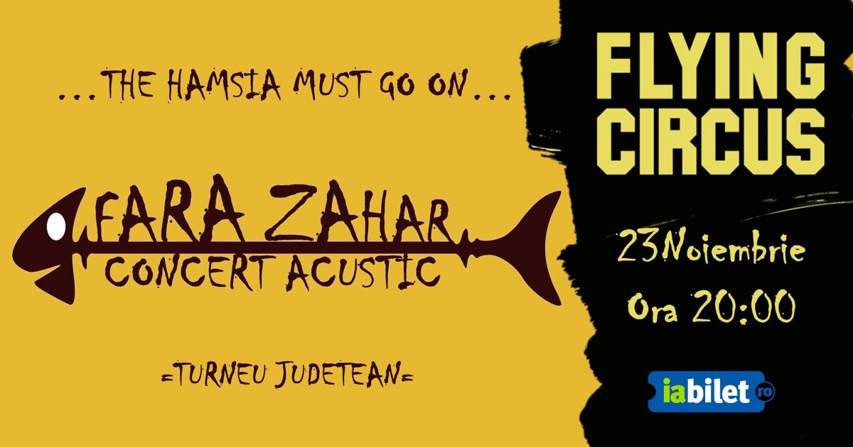Trupa Fără Zahăr revine în Flying Circus Cluj Napoca cu două concerte acustice. Acesta este concertul de SÂMBĂTĂ şi o să fie fain. Pionieri ai folkului alternativ, Bobo Burlăcianu şi Bobi Dumitraş formează un duo plin de umor şi de armonii muzicale bine balansate. Vino să le asculţi poveştile muzicale şi să râdem cu poftă. Viaţa-i comedie amăruie!