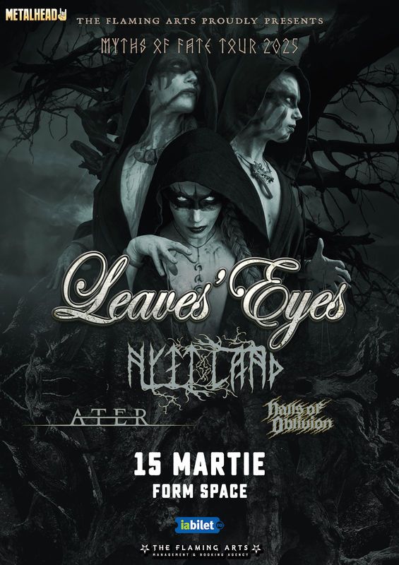 Leaves' Eyes este o formatie cu artisti din Germania si Norvegia.Bazele acesteia au fost puse in 2003, iar in cei peste 20 de ani de activitate au lansat opt albume de studio, cel mai recent, 'Myths of Fate' fiind oferit fanilor in Martie 2024. Abordeaza un Symphonic Metal in care temele lirice trateaza cu predilectie mitologia nordica si temele conexe acesteia.