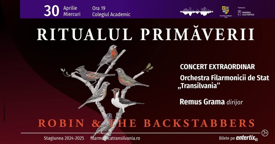 Robin and the Backstabbers, pentru prima dată la Cluj-Napoca, alături de Orchestra Filarmonicii de Stat „Transilvania”, în cea de-a treia invocare a Ritualului Primăverii. Un concert ca o inițiere, unde sunetul devine ecou al rădăcinilor uitate, iar ritmul precede pașii celor care dansează.