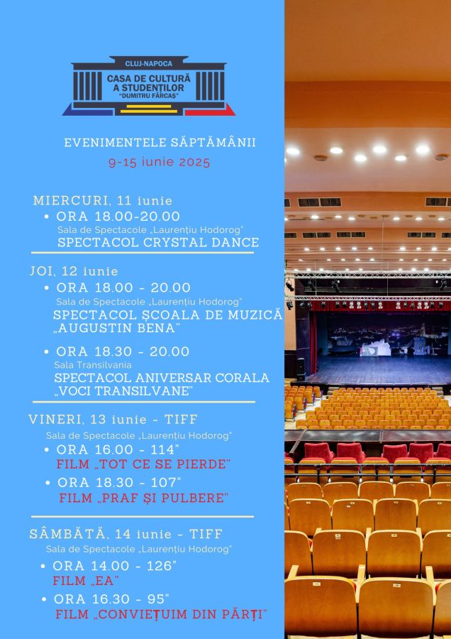 Spectacolul aniversar CÂNTEC, JOC ȘI VOIE BUNĂ pus în scenă de Corala „Voci Transilvane” a Casei de Cultură a Studenților „Dumitru Fărcaș” va celebra existența de 80 de ani și tradiția în ilustrarea muzicii corale, a celui mai longeviv ansamblu coral transilvănean, înființat în anul 1945, de către preotul Augustin Bena.