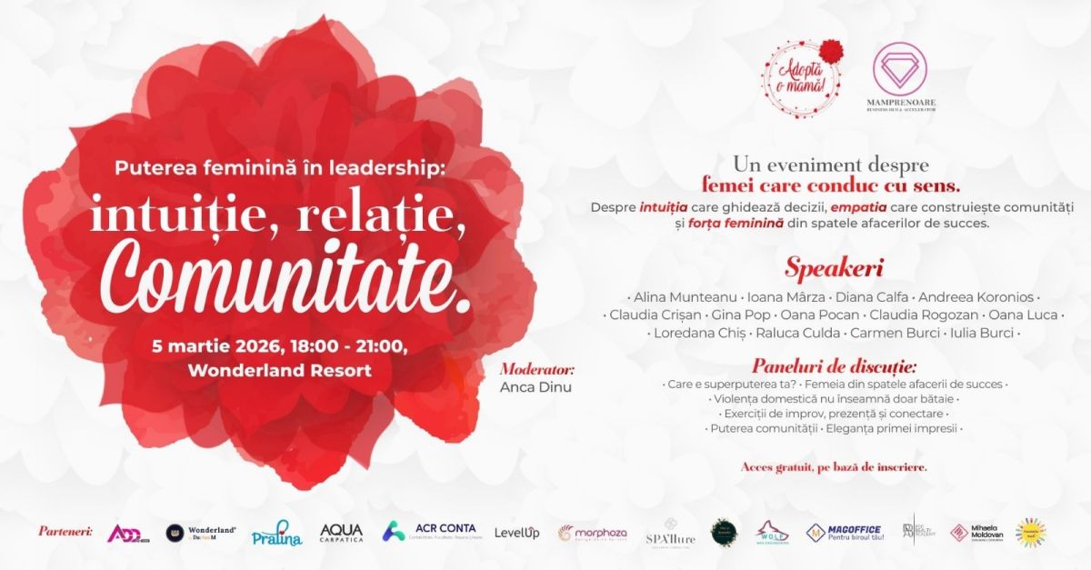 În luna martie, femeile din Cluj primesc mai mult decât flori și mărțișoare: primesc mesaje puternice de susținere și inspirație din partea unor voci feminine puternice, cu impact în societate. Pe 5 martie, conferința INFLORITOARE, ediția 2026, parte a campaniei ”Adoptă o mamă” demarată de Mirela Retegan și Fundația Zurli în 2015, ajunge din nou la Cluj-Napoca, sub titlul ”Puterea feminină în leadership: intuiție, relație, comunitate”. Evenimentul va avea loc la Wonderland Resort, începând cu ora 18:00 și este organizat de Asociația Mamprenoare, împreună cu Fundația Zurli.