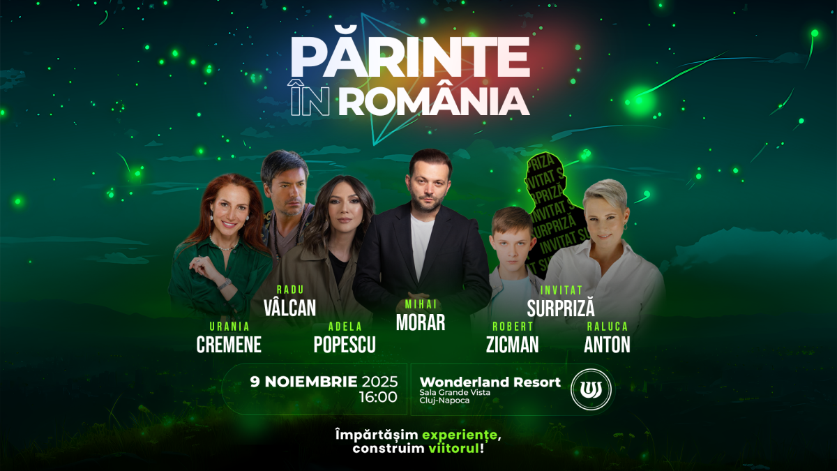 Moderată de Mihai Morar, cea de a doua ediție a conferinței „Părinte în România” va reuni pe 9 noiembrie, la Cluj-Napoca, experți de top în industria parentingului precum Urania Cremene și Raluca Anton, dar și pe tinerii părinți Adela Popescu și Radu Vâlcan care vor împărtăși din experiența lor și provocările zilnice.