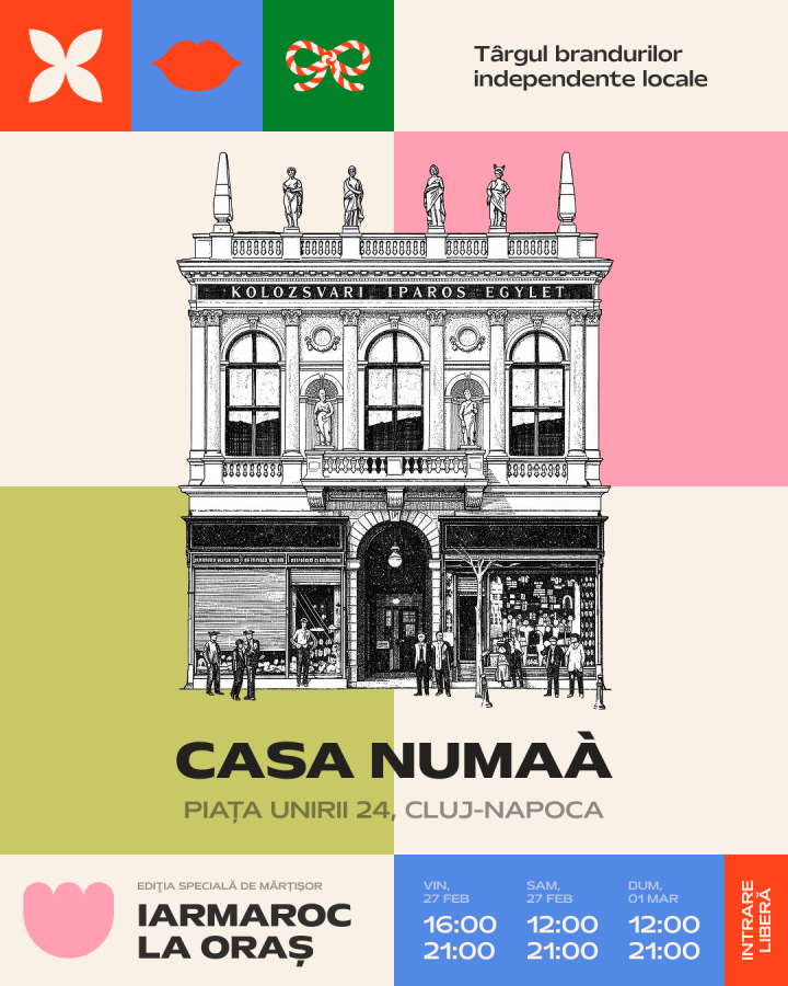 Primul IARMAROC la Oraș din 2026 vine odată cu Mărțișorul — acel mic simbol care ne amintește că începe un nou sezon de lucruri frumoase. Între 27–28 februarie și 1 martie, celebrăm ultimul weekend de iarnă și primul pas spre primăvară, într-o locație nouă pentru eveniment: Casa NUMÀÀ, Piața Unirii 24, Cluj-Napoca.