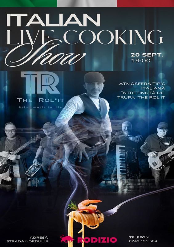 Pe ritmurile muzicii italiene live, asigurata de trupa THE ROL'IT va puteți bucura de live cooking show, două tipuri de paste preparate in roata de parmezan, antipasto italiano ca antreu!