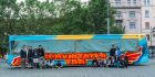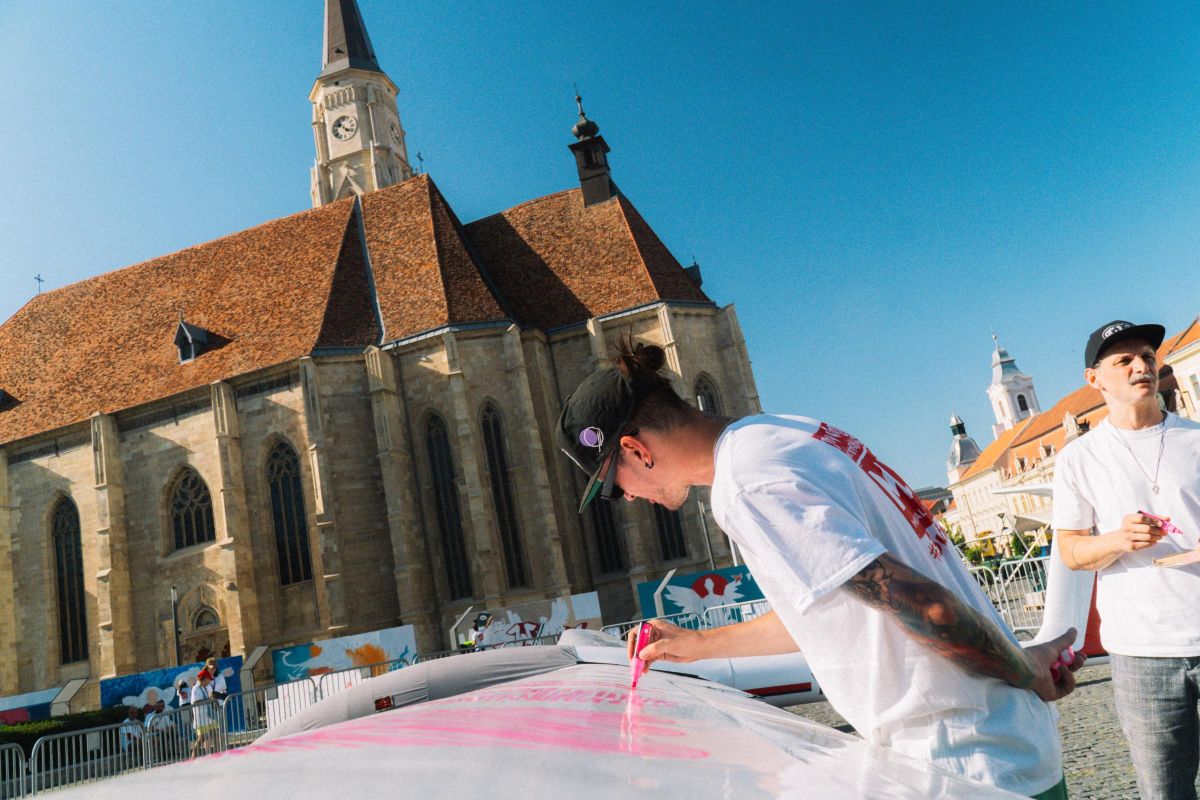 Un aeroplan și un autobuz pictat LIVE în Piața Unirii – simboluri ale ediției