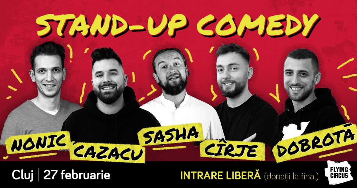 Cuj!!! Hai la un show de Stand-up Comedy cu 5 băieți tineri, promițători, la început de carieră în ale comediei.