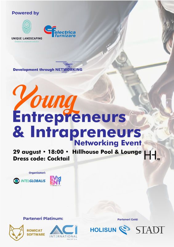 Young Entrepreneurs & Intrapreneurs Party & Networking este un eveniment organizat de INTELGLOBALIS Consulting, care ofera noi oportunitati si provocari! Acest eveniment este o reeditare a editiei cu acelasi nume de anul trecut si va aduce in fata dvs. cativa dintre cei mai importanti antreprenori si intraprenori din generatia tanara, din domenii diferite, pentru a initia o comunicare si o punte de legatura intre toti cei care vor asigura dezvoltarea Clujului in urmatorii ani.