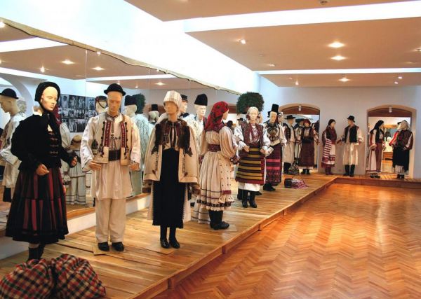 Existenţa seculară a unor anumite conjuncturi social-economice şi culturale zonale a creat în Transilvania, treptat, zone etnografice cu personalitate distinctă, ale căror mărci identitare au fost evidenţiate prin aspectul aparte al costumului popular local. Deşi aveau o structură de bază unitară, costumele zonale aparţinând aceleiaşi etnii conţineau trăsături particulare, care le diferenţiau exact în măsura în care puteau deveni suport identitar pentru comunităţi care îşi cultivau personalitatea distinctă. În cazul unor etnii diferite, care au coexistat timp de secole într-un teritoriu anume, tendinţa de a se defini prin diferenţiere a fost mai puternică şi s-a manifestat prin sublinierea elementelor specifice din structura costumului, cărora li se atribuia o energie identitară deosebită. Costumele ţărăneşti expuse datează de la sfârşitul secolului al XIX-lea şi sunt reprezentative pentru Ţara Făgăraşului, Mărginimea Sibiului, Secuime, Oaş, Maramureş, Năsăud, zona saşilor bistriţeni, Mocănimea Arieşului, Călata, pentru zonele Beiuş şi Ineu, Cărbunari şi Pădureni. Podoabele expuse în vitrine provin din Bihor, Oaş, din zonele Meseş şi Târnave, din zona săsească bistriţeană şi sibiană, din Pădureni, Ţara Haţegului şi Banat, din zonele Călata, Odorhei şi Trascău, din zona Bran.