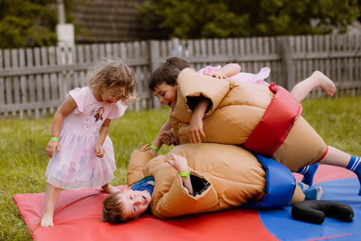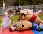 Țarcul cu gonflabile - tobogane gonflabile, pictură pe față, lupta cu mingi, costumele de summo, jocuri alături de personaje costumate, provocări și concursuri cu premii