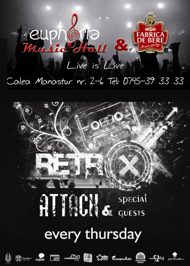In fiecare joi, in Euphoria Music Hall va asteapta la Retro Attack, alaturi de invitati speciali. Va asteapta o petrecere cu multa voie buna si multa distractie.