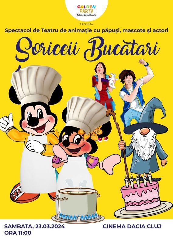 Spectacol muzical cu mascote, personaje și păpuși Acum ai ocazia să îți întâlnești pe cei mai faimosi șoricei,personajele favorite ale copiilor ,în cadrul celui mai distractiv spectacol pentru copii.