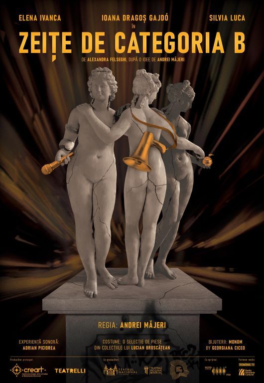 zeițe de categoria B de Alexandra Felseghi, după o idee de și în regia lui Andrei Măjeri, este un spectacol-eveniment care își propune să aducă pe aceeași scenă actrițe din trei orașe și trei teatre diferite, aplaudate în spațiile geografice în care joacă, dar mai puțin cunoscute în afara lor: Elena Ivanca (actriță a Teatrului Național „Lucian Blaga” Cluj-Napoca), Ioana Dragoș Gajdó (actriță a Teatrului „Regina Maria” Oradea), Silvia Luca (actriță a Teatrului „Mihai Eminescu” Botoșani).