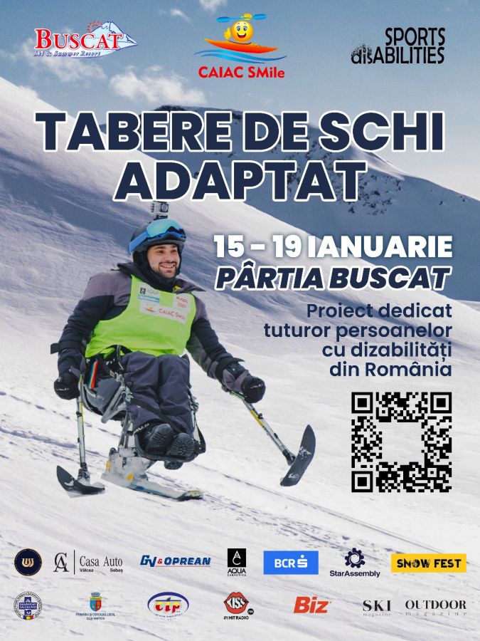 Între 15 și 19 ianuarie va avea loc, pe pârtia de la Buscat (jud. Cluj), prima tabără de schi dedicată persoanelor cu dizabilități din sezonul 2023-2024. Tabăra este organizată de Caiac SMile, în parteneriat cu Buscat Resort Băișoara, Consiliul Județean Cluj prin serviciul public Salvamont Salvaspeo Cluj, Primăria și Consiliul Local al Municipiului Cluj-Napoca, Compania de Transport Public Cluj-Napoca. Echipa asociației sătmărene va fi prezentă în fiecare dintre aceste zile pe pârtie, între orele 11:00 și 16:00, și va schia alături de persoanele cu dizabilități, sub atenta supraveghere a salvamontiștilor de la Serviciul Salvamont Salvaspeo Cluj.