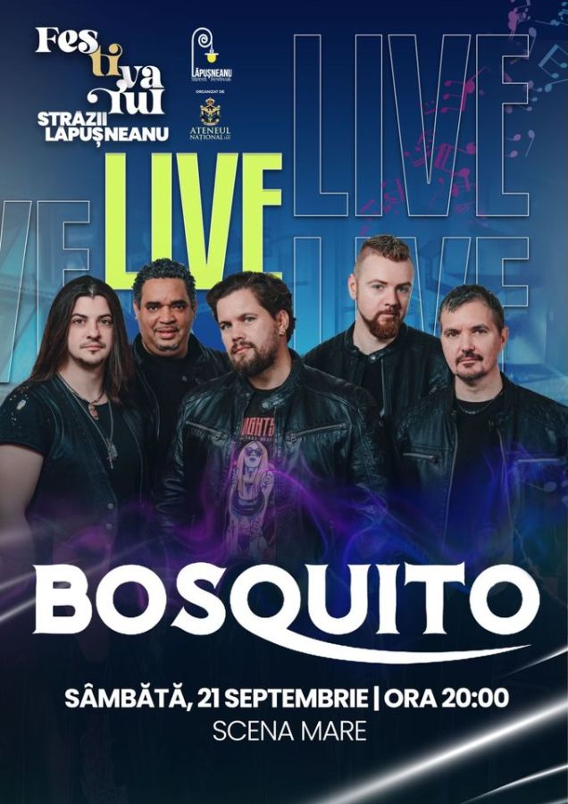 Sâmbătă, 21 septembrie, la ora 20:00, Scena Mare va vibra pe ritmurile inconfundabile ale trupei Bosquito!