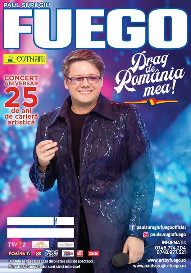 Turneul national „DRAG DE ROMÂNIA MEA!” va debuta pe 13 martie și se va încheia pe 26 martie, poposind în mai multe orașe din România. Fuego propune publicului său multă emoție, o sărbătoare a muzicii de suflet, cu noutăți, premiere, dar și cu tradiționalele sale șlagăre, lansând și un nou album, cu totul special, cel cu numarul 32 din cariera sa. Alături de band-ul său și de câteva surprize unice, Fuego va oferi un spectacol de poveste, două ore de trăiri intense, de fericiri, în care nimic nu va mai conta cu excepția muzicii și a sentimentelor puternice! Spectacolul „DRAG DE ROMÂNIA MEA!” vine ca o încununare, ca o celebrare a frumosului, într-o prezentare de zile mari, celebrând 25 de ani de carieră pe piața muzicală românească a artistului Paul Surugiu-Fuego.