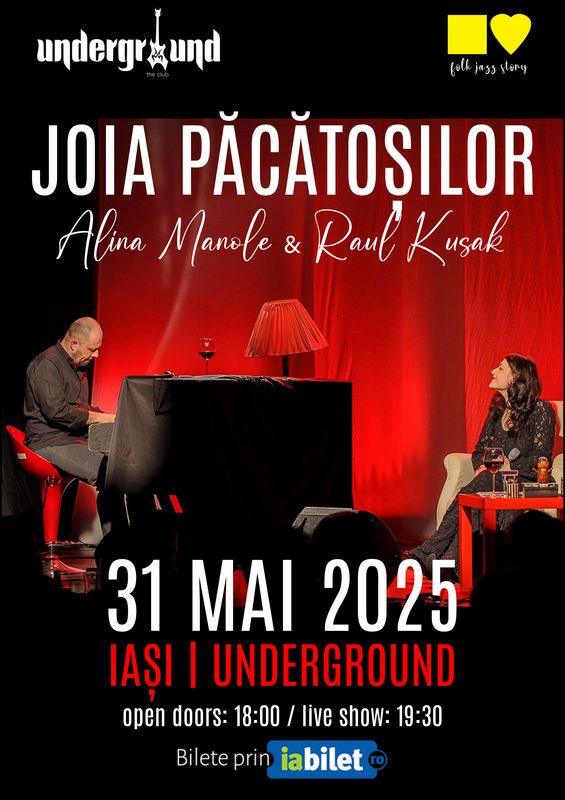 Sâmbătă, 31 MAI, în Iași, la Underground, are loc ”Joia Păcătoșilor – Alina Manole & Raul Kusak”!
