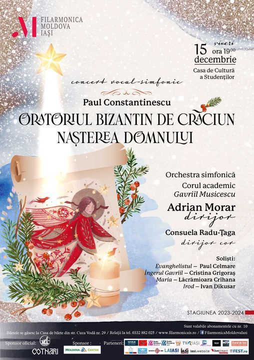 Artiștii Filarmonicii MOLDOVA, sub bagheta dirijorului ADRIAN MORAR, vor interpreta ORATORIUL BIZANTIN DE CRĂCIUN - NAȘTEREA DOMNULUI de Paul Constantinescu.
