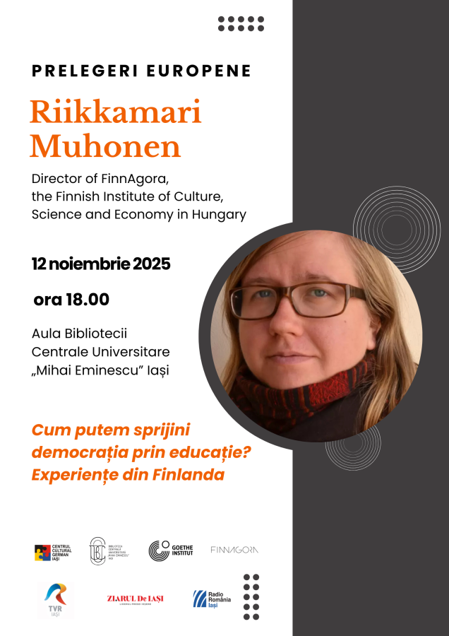 Centrul Cultural German din Iași și Biblioteca Centrală Universitară „Mihai Eminescu” invită publicul la o nouă ediție a seriei European Lectures, care va avea loc miercuri, 12 noiembrie 2025, de la ora 18:00, în Aula BCU Iași.