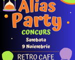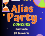 Alias Party este un joc de echipă care îți testează rapiditatea, vocabularul și spiritul de echipă. Scopul este să explici cuvinte sau expresii cât mai clar colegilor tăi de echipă, fără să folosești cuvintele-cheie interzise, în timp ce cronometru ticăie! Râsete, competiție și distracție garantate!