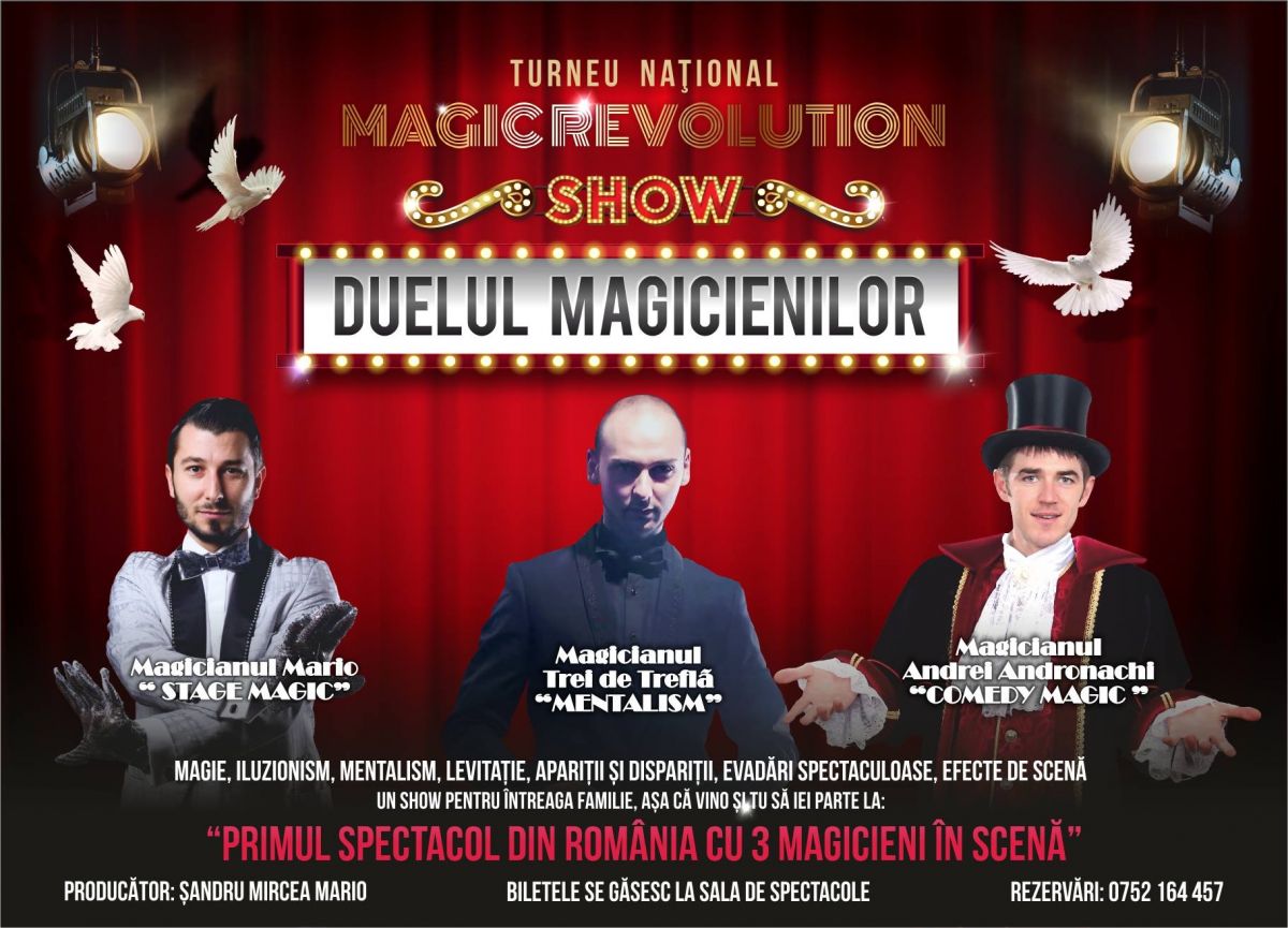 Magicianul Mario, Trei de Trefla si Andrei Andronachi cunoscuti din emisiunile de divertisment, va invita la cel mai complex spectacol de Magie & Divertisment din Romania, in care veti lua parte la apariţii spectaculoase de porumbei şi iepuraşi - aparitii de asistente, numerele de prestidigitatie si iluzionism vor fi din cele mai bune si ne mai vazute pana in prezent.