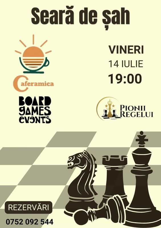 Va fi o seară de șah relaxantă într-o locație nouă! Vom începe de la 19:00 cu un mic workshop despre deschideri.