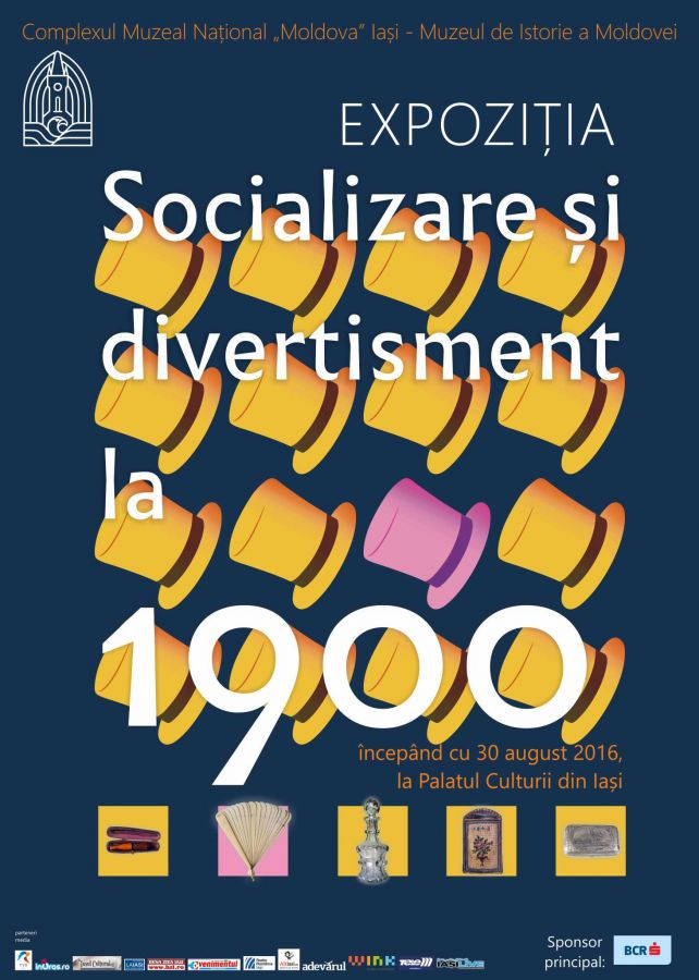 Muzeul de Istorie a Moldovei din cadrul Complexului Muzeal Naţional „Moldova” Iaşi vă invită să vizitați, începând de marți, 30 august 2016, o nouă expoziție, la Palatul Culturii. „Socializare și divertisment la 1900” reunește piese din patrimoniul Muzeului de Istorie a Moldovei, redând atmosfera sfârșitului de secol XIX și început de secol XX.