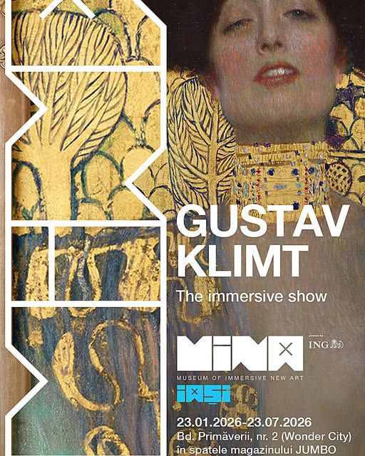 Vino să explorezi frumusețile artei simboliste printr-o experiență imersivă unică, care cuprinde 60 dintre lucrările celebre ale pictorului Gustav Klimt, printre care "Doamna cu evantai", "Sărutul" și "Doamna în Aur".