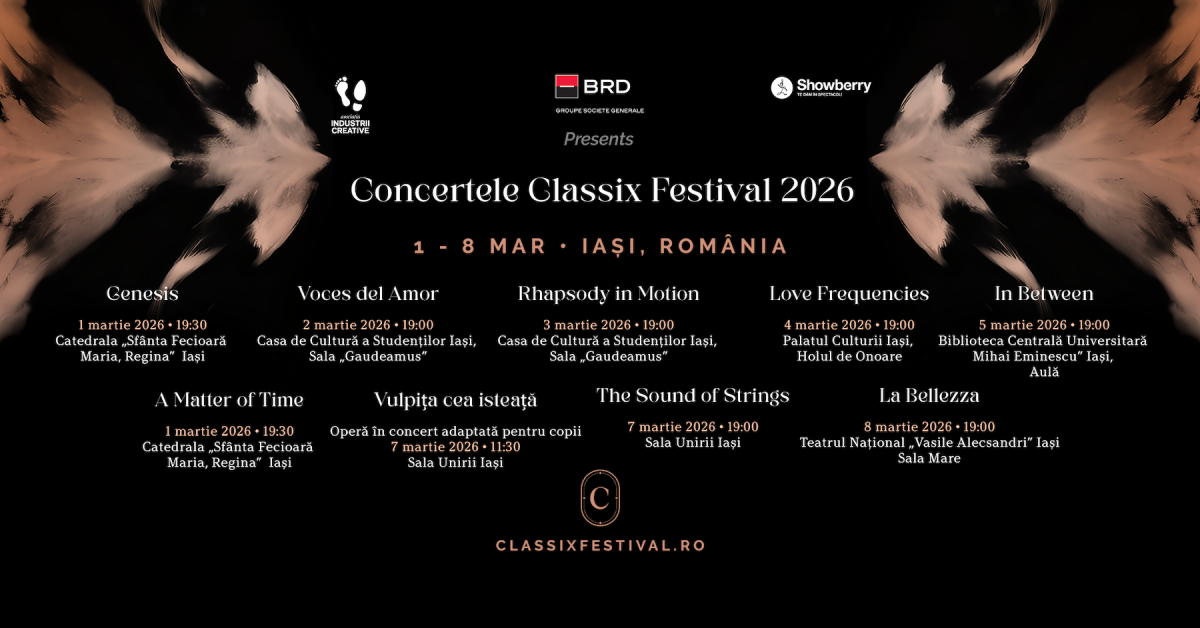 Organizat de Asociația Industrii Creative și Showberry, Classix Festival va avea loc la Iași în perioada 1–8 martie 2026, iar biletele și abonamentele sunt disponibile pe site-ul oficial al festivalului.
