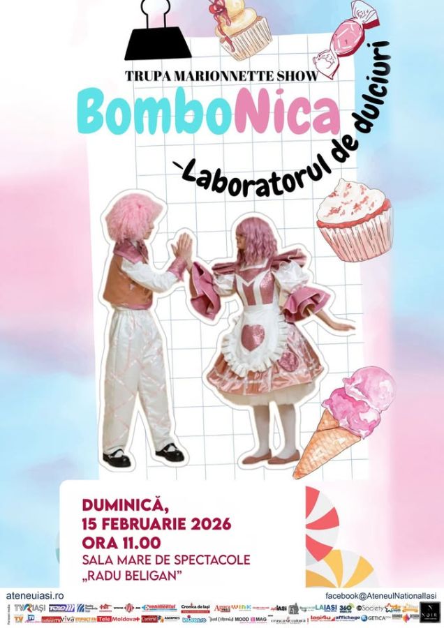 Marionnette Show și Ateneul Național din Iași vă invită Duminică, 15 februarie 2026, ora 11.00 la spectacol de teatru pentru copii „BomboNica-atelierul de dulciuri”, la Sala Mare de Spectacole „Radu Beligan”. Bilete aici: https://www.ateneuiasi.ro/class/bombonica-3/ sau la casieria Ateneului!