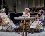 Spectacolul are două planuri vizibile: unul al «gaițelor», stabile, devorante, înțepenite într-un trecut continuu care înseamnă prezent doar pentru ele, pe care și-l consumă jucând cărți, bârfind, certându-se, făcând și desfăcând intrigi uneori ieftine și agresive, cu adevărat primejdioase alteori. Își anexează sau vor să își anexeze, tropăind de implicare, terenuri, case, obiecte, rude, oameni...