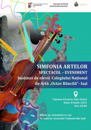 Ateneul Național din Iași alături de Colegiul Național de Arte „Octav Băncilă” Iași și Asociația de Părinți „Porți deschise elevilor” vă invită Joi, 8 Iunie, de la ora 18:00 la Sala Unirii la spectacolul-eveniment „Simfonia Artelor”!