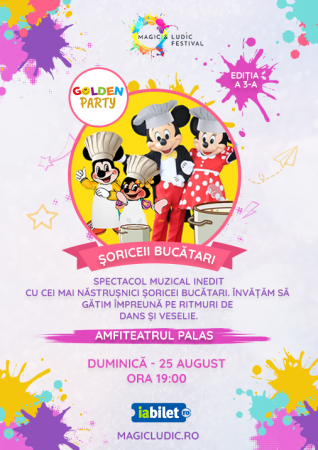 Magic&Ludic Festival împreună cu trupa Golden Party din Cluj-Napoca oferă ocazia copilului tău să se întâlneacsă cu cei mai faimoși șoricei, personajele favorite de către cei mici, în cadrul celui mai distractiv spectacol pentru copii.