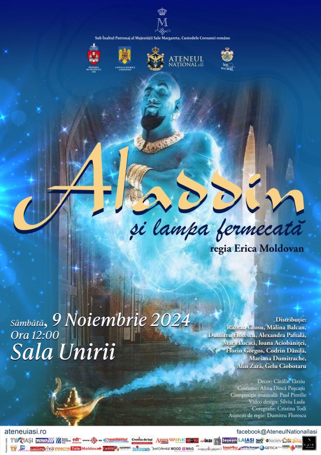 Ateneul Național din Iași vă invită Sâmbătă, 9 noiembrie 2024, ora 12.00, la un spectacol pentru copiii de toate vârstele! „Aladdin și lampa fermecată” – spectacol regizat de Erica Moldovan!