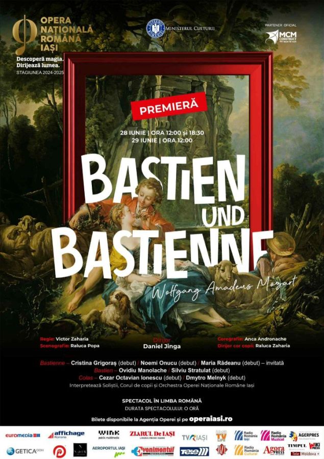 Opera BASTIEN UND BASTIENNE de Wolfgang Amadeus Mozart va fi prezentată în premieră la finalul lunii iunie, în trei reprezentanții consecutive, sâmbătă, 28 iunie, de la orele 12:00 și 18:30, respectiv duminică, 29 iunie, de la ora 12:00.