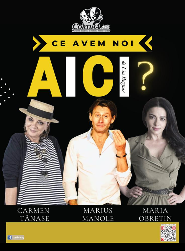 Comedie (premieră) "Ce avem noi aici?" de Lia Bugnar, distribuție: Carmen Tănase, Marius Manole, Maria Obretin. Regie Lia Bugnar. Se ia o mama foarte posesiva de baiat (Carmen Tanase), se adauga baiatul timid, ascultator, dar cu mici derapaje (Marius Manole), se presara niste anunturi matrimoniale, se picura niste femeie superba, singura si disperata (Maria Obretin) si ai deja o comedie care dezarmeaza si pe cel mai ursuz spectator.