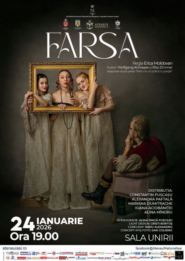 Vă invităm sâmbătă, 24 ianuarie 2025, ora 19.00 la spectacolul de teatru „Farsa”, regia Erica Moldovan (Sala Unirii); cu Constantin Pușcașu.