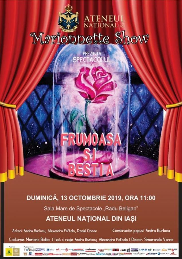 Spectacol pentru copii „Frumoasa și Bestia” al trupei Marionette Show va avea loc duminică, 13 Octombrie 2019, ora 11:00, în Sala Mare de Spectacole „Radu Beligan” a Ateneului Național din Iasi.