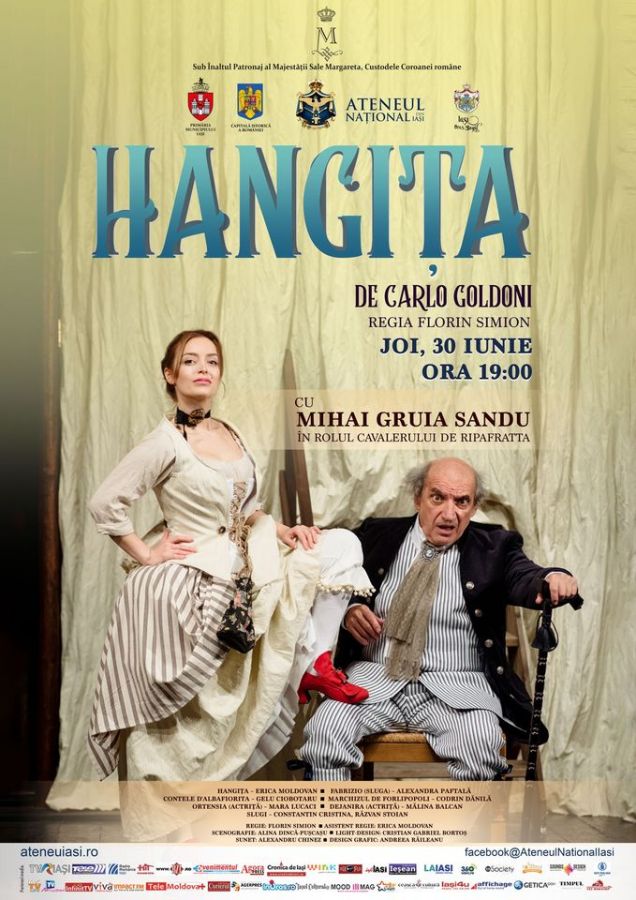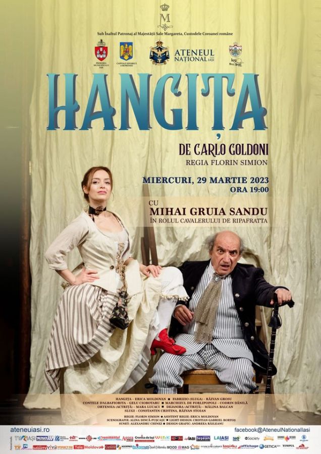 Ateneul Național din Iași vă invită Miercuri, 29 martie 2023, ora 19.00 la un nou spectacol – „HANGIȚA”, de Carlo Goldoni, regia Florin Simion, cu MIHAI GRUIA SANDU în rolul Cavalerului de Ripafratta!