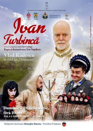 Ateneul Național din Iași vă invităm Duminică, 26 februarie 2023, ora 19.00, la Sala UNIRII (Cinema Victoria) la spectacolul „Ivan Turbincă”, o comedie populară de Ion Creangă pentru toată familia cu actorul Vlad Rădescu în rolul lui „Dumnezeu”!