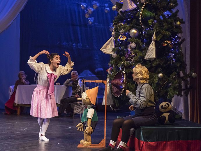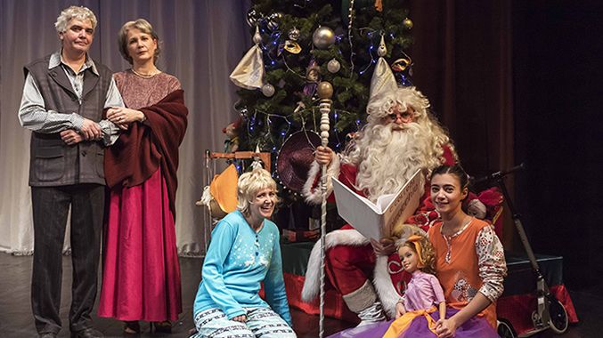 Distribuția: Tata – Cristian Gheorghiu, Mama – Ileana Ocneanu, Băiatul – Iulia Deloiu Trif, Fata – Camelia Dilbea, Vulpea – Beatrice Volbea, Motanul – Claudiu Gălățeanu, Moș Crăciun – Aurelian Diaconu, Grupul clovnilor, stafiilor și mexicanilor – Ionela Arvinte, Gabriela Andrei, Elena Zmuncilă, Cristian Gheorghiu, Emanuel Florentin, Dragoș Matfei